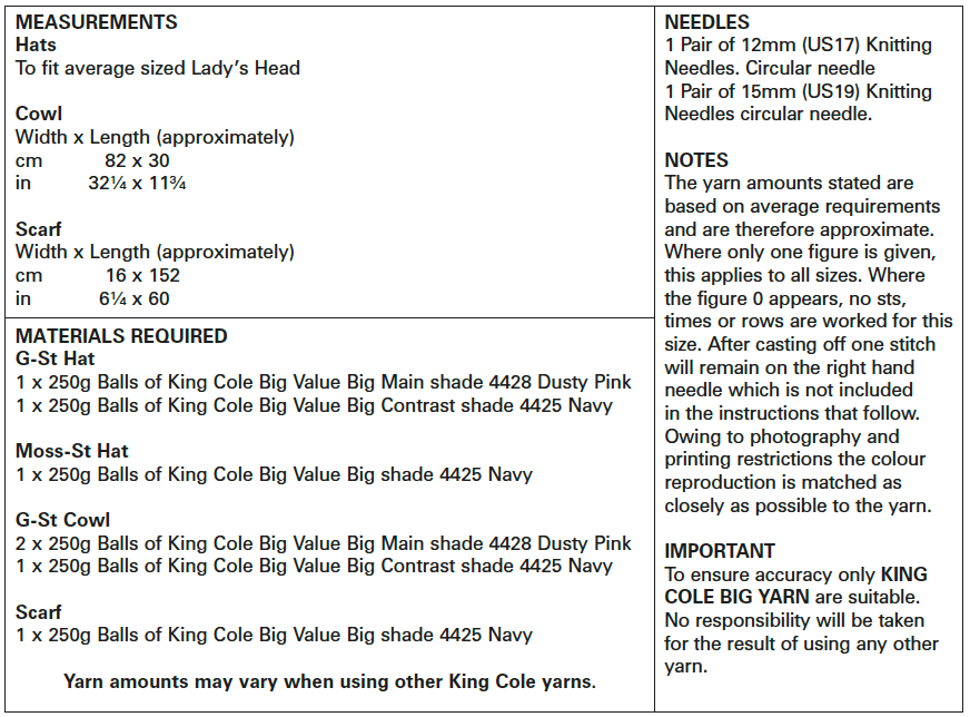 King Cole Big Value Big Knitting Pattern