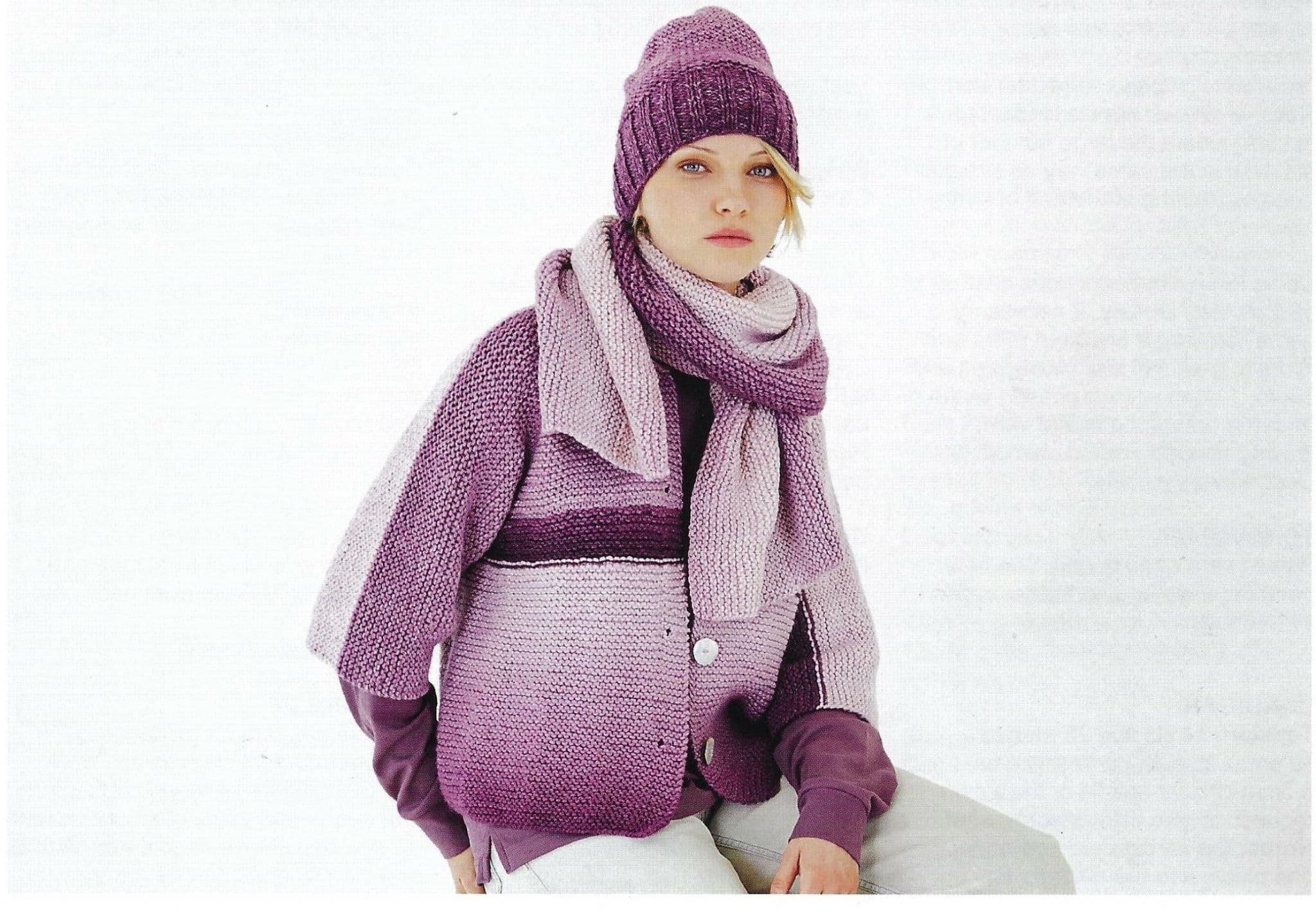 - 10185 Ladies Cardigan, Hat & Scarf
