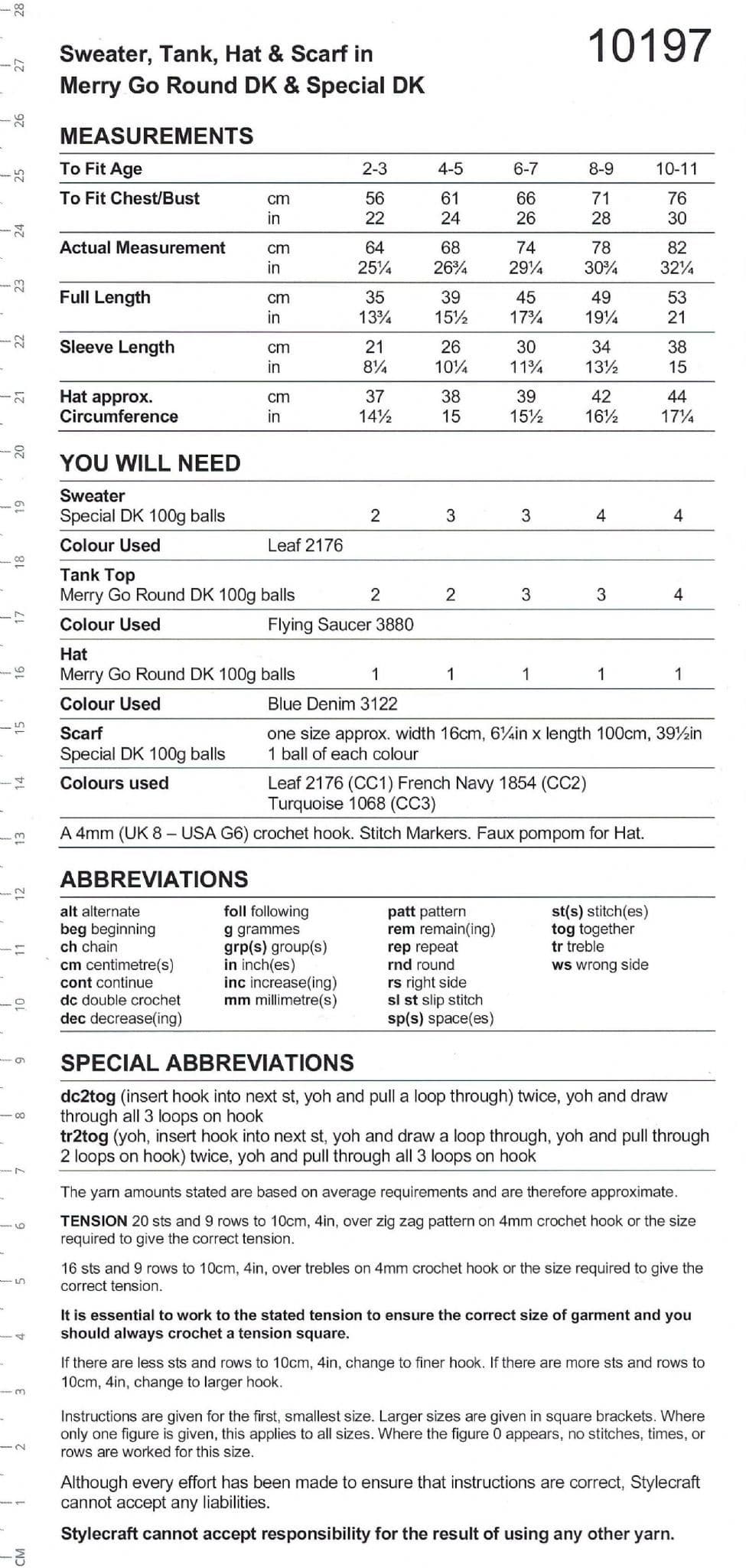 - 10197 Children's Sweater, Top, Hat & Scarf